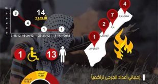 إحصائية لعدد الشهداء والجرحى #الفلسطينيين منذ إعلان ترمب “القدس عاصمة لإسرائيل” في ديسمبر الماضي