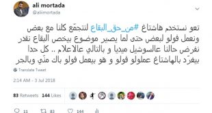 غرّد الاعلامي علي مرتضى حول اعداد المقبولين في مباريات امن الدولة من المسلمين الشيعة في بعلبك الهرمل منتقداً العدد القليل بالنسبة لباقي المحافظات ثم اتبع تغريدته بدعوة للاعتراض على احوال البقاع تحت هاشتاغ #من_حق_البقاع ، الهاشتاغ لاقى رواجاً كبيراص ليصير الى الترند الاول في لبنان، وكان اللواء جميل السيد …