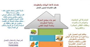 خدمات قاعدة البيانات والمعلومات وطلب الإشتراك السنوي الشامل الذي يحتوي على سلة من الخدمات البحثية والإحصائية والمعلوماتية . للمراجعة والإستعلام : tele-whats App 0096178853985 009611836610 khalil.dirasat@gmail.com