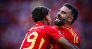 فاز منتخب إسبانيا في مباراته التي جمعته بمنتخب كرواتيا بثلاثية نظيفة.ضمن منافسات الجولة الأولى من بطولة أمم أوروبا 2024. ونجح المنتخب الاسباني في تسيير المباراة بالطريقة التي ارادها…وأنهى الامور بثلاثية نظيفة بصم عليها الكابتن موراتا وفابيان رويز وداني كارفخال. وشهدت المباراة حضور لاعب برشلونة الشاب لامين …