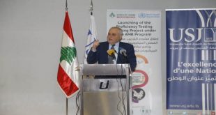 أطلق وزير الصحة العامة الدكتور جميل جبق مشروع التدريب على جودة الفحص الميكروبيولوجي ضمن برنامج مكافحة مقاومة الميكروبات للمضادات الحيوية، وذلك في حفل أقيم بالجامعة اليسوعية حضره ممثل وزير الزراعة حسن اللقيس مستشاره الدكتور محمد فران، رئيس الجامعة اليسوعية الأب البروفسور سليم دكاش، ممثلة منظمة الصحة العالمية في لبنان …