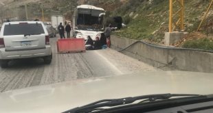 بين حافلة ركاب سورية وبيك آب هينو وسقوط عدد من الجرحى تم نقلهم بواسطة الصليب الاحمر اللبناني الى مستشفيات المنطقة