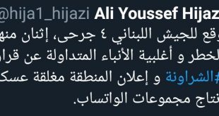 علي حجازي: وقع للجيش اللبناني ٤ جرحى، إثنان منهم بحال الخطر و أغلبية الأنباء المتداولة عن قرار بتدمير حي الشراونة و إعلان المنطقة مغلقة عسكرياً هي من إنتاج مجموعات الواتساب.