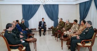 السيد الرئيس بشار الأسد خلال استقباله وفداً عسكريا إيرانياً _عراقياً مشتركا، ضم رئيسي أركان القوات المسلحة الإيرانية، والجيش العراقي، وعدد من القيادات العسكرية من البلدين، بحضور العماد علي أيوب وزير الدفاع.. – العلاقة التي تجمع سورية بإيران والعراق علاقة متينة، تعززت خلال فترة الحرب، حين امتزجت دماء القوات المسلحة …