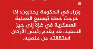 صحيفة “معاريف” العبرية: وفقًا للجيش الإسرائيلي، طلب رئيس الوزراء إعداد وتقديم خطط احتلال المعسكرات المركزية ومدينة غزة بحلول يوم الخميس ، على أن تُعرض على مجلس الوزراء للتصويت عليها. ومنذ الليلة الماضية، يعمل الجيش الإسرائيلي على إعداد هذه الخطط. ويؤكد الجيش أن عملية احتلال غزة ستتطلب تعبئة واسعة النطاق للاحتياطيات …