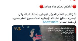 يوجه تحذيرا لميناء رأس عيسى، ميناء الحديدة، وميناء الصليف في اليمن تمهيدًا لشن عدوان