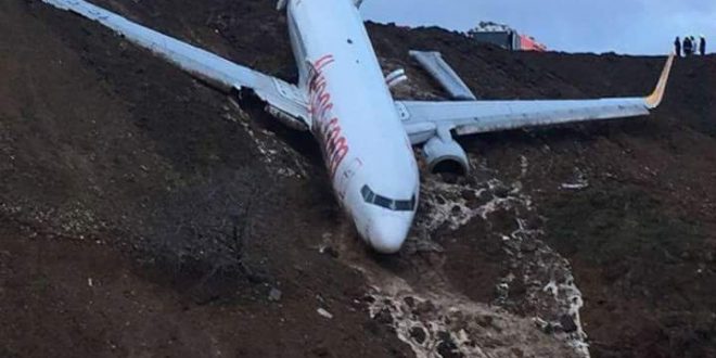 نجاه 162 راكب من كارثه جويه في مطار Trabzon في تركيا