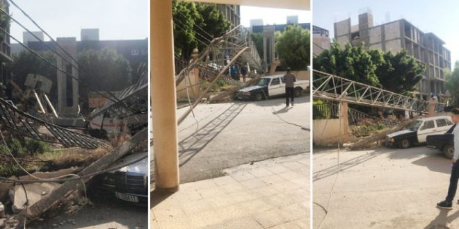 وشاءت العناية الالهية ان تقتصر الاضرار على الماديات حيث صودف خلو المحلة من المارة لحظة سقوط الونش.