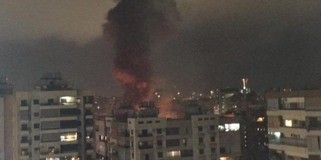 دوى انفجار قوي تلاه اندلاع حريق داخل بورة في منطقة حي ماضي بالقرب من حلويات السلطان خلف محطة هاشم في الضاحية الجنوبية لبيروت.