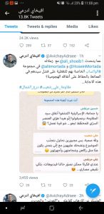 نشر المتحدث باسم الجيش العبري افيخاي ادرعي فيديو على حسابه على تويتر ملفقا محادثة بين الزملاء علي شعيب حسين مرتضى وعلي مرتضى