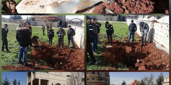 عُثر على صاروخ سقط في منطقة حوش الغنم بعد الغارات التي شنتها اسرائيل على سوريا.