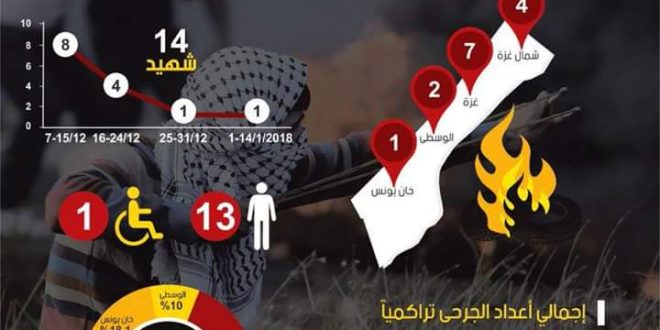 إحصائية لعدد الشهداء والجرحى #الفلسطينيين منذ إعلان ترمب “القدس عاصمة لإسرائيل” في ديسمبر الماضي