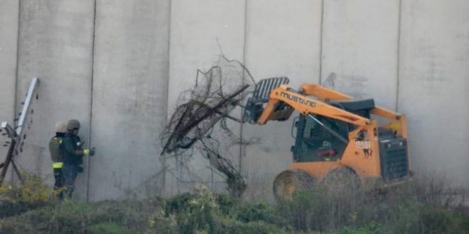 جيش الإحتلال الإسرائيلي يباشر بإزالة السياج الشائك بعد بناء الجدار الإسمنتي عند حدود مستعمرة المطلة والجيش اللبناني
