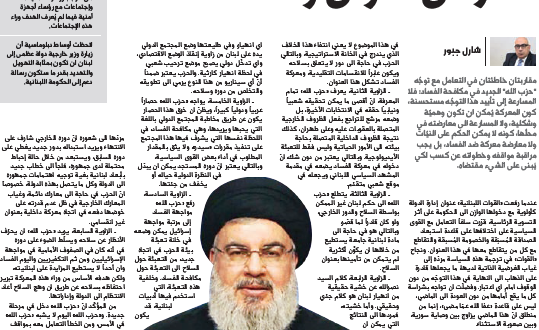 ـ الزاوية السادسة، رفع «حزب الله» مواجهة الفساد إلى مرتبة مواجهة إسرائيل يمكن وضعه في خانة تعبئة بيئة الحزب في اتجاه جديد، من التعبئة حول السلاح الى التعبئة حول مكافحة الفساد.
