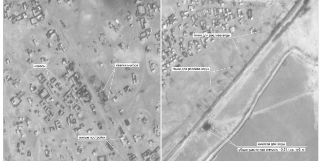 وزارة الدفاع الروسية: صور من محيط مخيم الركبان بريف حمص الجنوبي الشرقي، تظهر بوضوح حواجز الحماية، وجدار قوي ونقلط تفتيش، للقوات الامريكية والفصائل التي تدعمها واشنطن، وهذه الهياكل تشبه “الحلبة” لكي لا تسمح لسكان المخيم مغادرة المنطقة.