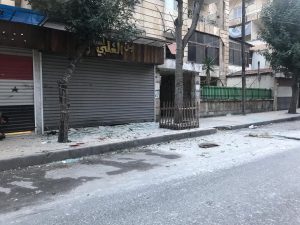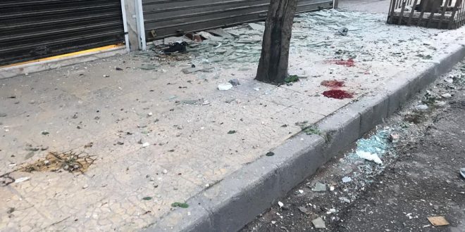 صورتان من مكان سقوط احدى القذائف الصاروخية في حي الموكامبو في مدينة حلب عربية شاركها Facebook Twitter والتي اسفرت عن سقوط ضحايا في صفوف المدنيين.