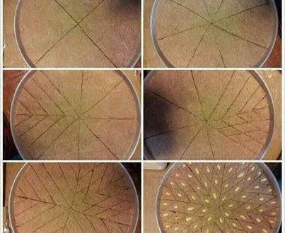 – نخرج الكنافة من الفرن, ونقلبها في وعاء أخر لكي تصبح طبقة الكنافة في الاعلى وطبقة الحشوة في الاسفل.