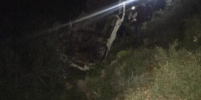 ادى انقلاب سيارة رباعية الدفع من نوع نيسان الى اصابة سائقها نضال علوش وزوجته بكسور ورضوض نقلا على اثرها الى مستشفى اليوسف الطبي للعلاج ووصفت حالتهما بالمستقرة.