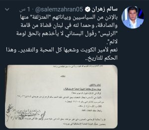 نشر الإعلامي سالم زهران حكما قضائيا صادرا عن محكمة المطبوعات في بيروت وفيه “”