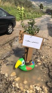 نشرت صفحة عربصاليم على موقع التواصل الاجتماعي فيسبوك صوراً لشباب وقد حولوا مكان الحفر المستعصية على طريق حبوش-عربصاليم الى منتزه للاستجمام والصيد…. فكاهية هي الفكرة ، ولكنها حتماً تعبر عن يأس الاهالي من معالجة المشكلة المزمنة على هذا الطريق الحيوي….