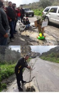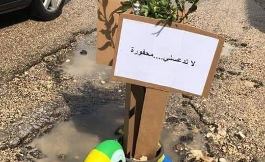 هذا وقد نفذ عدد من شبان اقليم التفاح، وقفة استنكارية ملفته للنظر، على طريق حبوش عربصاليم اليوم الاحد، تحت شعار “لا تدعسني محفورة”.