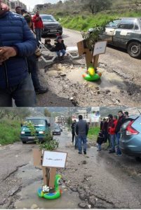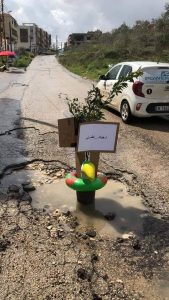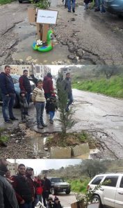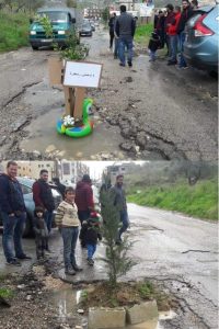 وجاءت الوقفة استنكارا لتجاهل بلديات المنطقة اصلاح الحفر على الطريق المذكور، والتي تحولت الى برك تشبه الافخاخ حين تمتلئ بالمياه