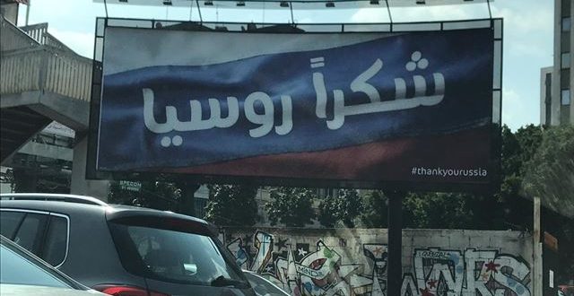 استيقظَ اللبنانيّون يوم أمس على “مادة اعلانيّة” وضعت على عدد كبير من اللوحات المخصصة للاعلانات في أكثر من منطقة لبنانية، كانت عبارة عن علم روسي كتبت عليه عبارة “شكراً روسيا”.