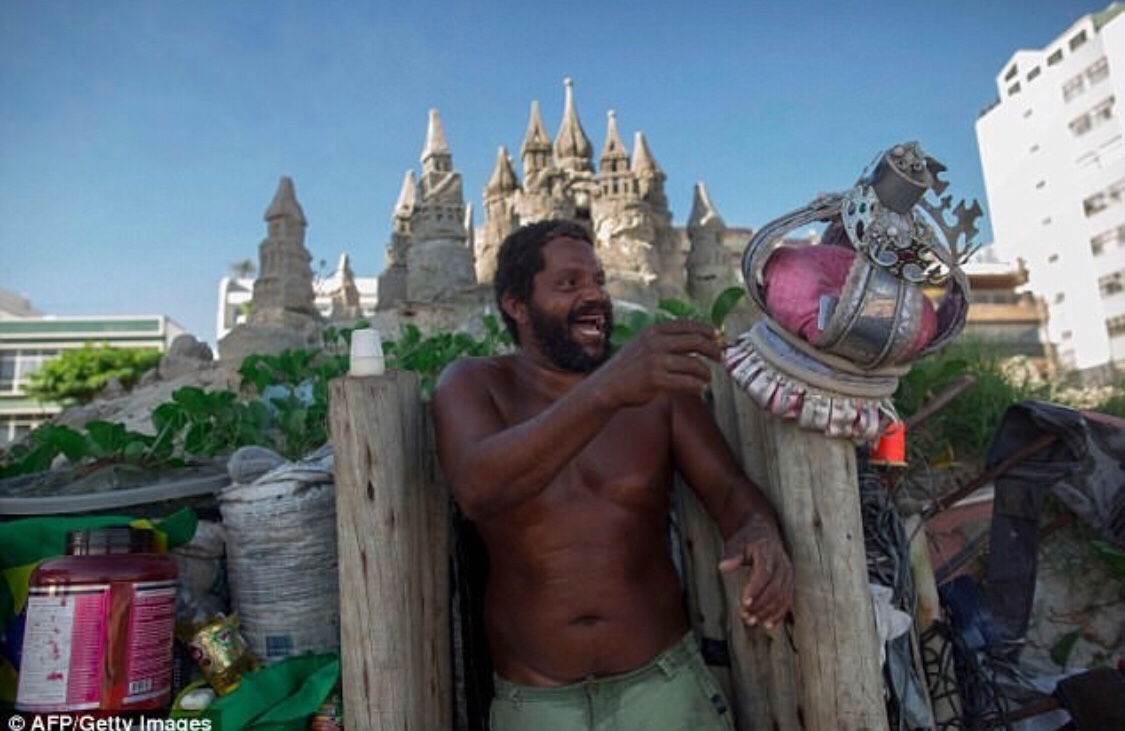 ويصلح مارسيو حصناً من هنا وبوابة ضخمة من هناك، ويسقي قلعته كي لا تنهار. فهذا الرجل الذي يحتفل قريباً بعيد ميلاده الرابع والأربعين يقيم منذ 22 عاماً في قصر من الرمل في حي بارا دي تيجوكا الراقي في غرب ريو دي جانيرو حيث يلقبه السكان والأصدقاء بـ “الملك”.