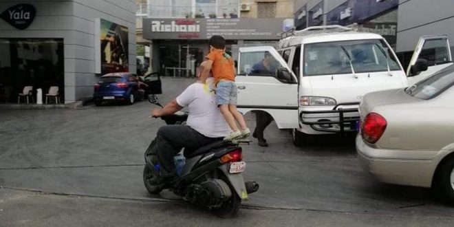 نشرت جمعية اليازا في تغريدة على حسابها عبر تويترصورة لرجل يقود دراجته النارية وخلفه ابنه واقفًا وقالت: “برسم وزير الشؤون الاجتماعية ورئيس واعضاء بلدية الشويفات، مشهد صادم لنقل طفل على دراجة مخالفة مع سائق لا يستعمل خوذة واقية. اليازا تطالب وزارة الداخلية والبلديات وقوى الأمن حماية الأطفال عبر تطبيق صارم ومتواصل لقانون السير.”
