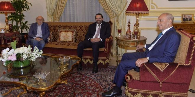 عقد مساء الأربعاء لقاء في مقر الرئاسة الثانية في عين التينة، ضمّ رئيس مجلس النواب نبيه بري ورئيس مجلس الوزراء سعد الحريري ورئيس “الحزب التقدمي الإشتراكي” وليد جنبلاط، وقد استمر حتى العاشرة ليلاً.