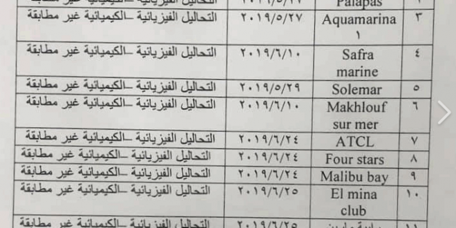 ويبدو ان العينات التي أخذت من هذه المسابح تعود لشهري أيار وحزيران.