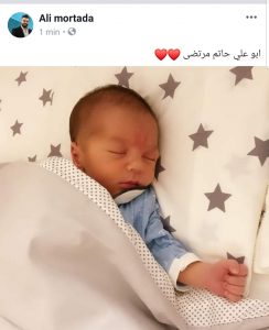 نشر الزميل علي مرتضى صورة لمولده الجديد حاتم مرتضى وكتب ( ابو علي حاتم مرتضى) حتى الان خبر ولادة حاتم سرق الاضواء من والده، هل الصورة ايضا ستسرق هضامة والده؟ (فرخ البط عوام ❤)