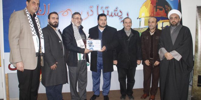 الجميع أحب فلسطين …أرضها وترابها… والكل تغنّى بها بأشعار وخواطر وكلمات وعبارات …ليس لأنها البلد الأجمل بل لأنها البلد الأعمق في جوهرها وحضارتها ، ولم تحظَ مدينة من المدن في التاريخ بما حظيت به مدينة القدس من اهتمام سياسي وحضاري وقومي وتاريخي وأدبي نظرًا لمكانتها الهامة والمقدسة على مر التاريخ… وقد تنادى الشعراء لاستحضار أجمل القصائد التي قيلت لأجل القدس كما برع الفنانون في التعبير عن ولائهم لهذه المدينة المقدسة …هذا ما أقامه فنانو ملتق أطياف الفني ناثرين ألوانهم في فضاءات معرض متميز أقامه الملتقى عصر يوم السبت٢٧ ك٢ ٢٠١٨ حمل عنوان “ريشتنا ترسم القدس” برعاية بلدية النبطية وبالتعاون مع مركز الامام الخميني الثقافي وحضور ممثلين عن النواب محمد رعد وياسين جابر في قاعة المعارض في الأكاديمية الكندية اللبنانية المميزة في النبطية.