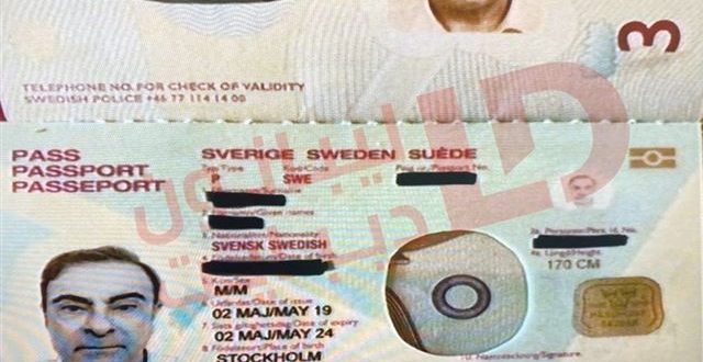 نشر "ليبانون ديبايت" صورة جواز سفر "سويدي"، يحمل صورة الرئيس السابق لتحالف سيارات رينو-نيسان كارلوس غصن. ومن المرجح ان يكون قد تم استخدام هذا الجواز "المزور" في احدى مراحل هروب وتخفي كارلوس غصن بين اليابان ولبنان.