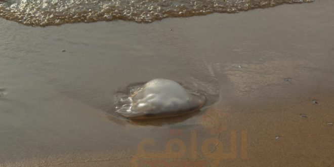 الى مكتب الواقع برس ليخبرنا عن قناديل البحر البيضاء التي تفترش شاطئ البحر ولم نصدق ذلك حتى قصدنا المحلة المذكورة لنتفاجئ بعشرات القناديل على الشاطئ التي عادةً تأتي في الصيف وخاصة مع بداية شهر آب لينتهي موسمها في شهر أيلول.