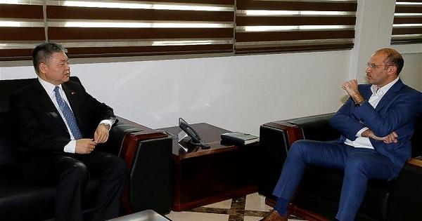 عرض وزير الصحة حمد حسن مع السفير الصيني في لبنان Wang Kejian الإجراءات المتبعة لمنع انتقال انتشار فيروس كورونا في لبنان في اجتماع حضره مدير مكتب وزير الصحة د. حسن عمار.