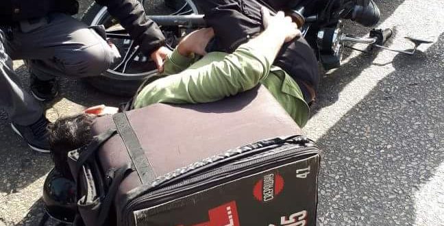و في ألتفاصيل ، أن شاب يقود دراجة نارية تابعة لمحلات ” بيتزا نيني ” حاول سائقها المرور بين السيارات ألمارة ، مما ادى لحشره بين سيارتين ، ألامر ألذي ادى لأصابته بقدميه بجروح بليغة .