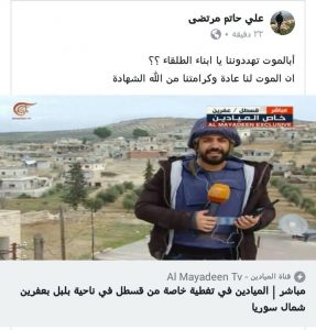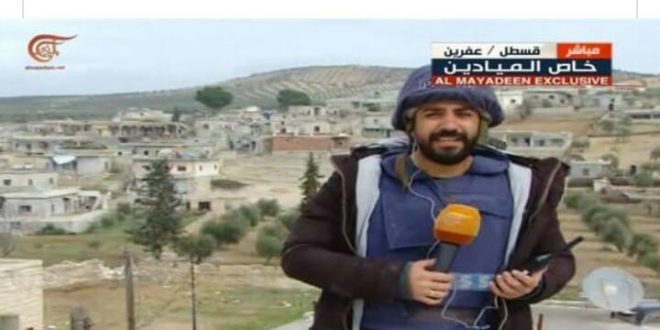 تعرض فريق الميادين للاستهداف من المسلحين الموالين لتركيا خلال تغطيته للاحداث في عفرين ، ٧ طلقات قنص في قسطل خضر