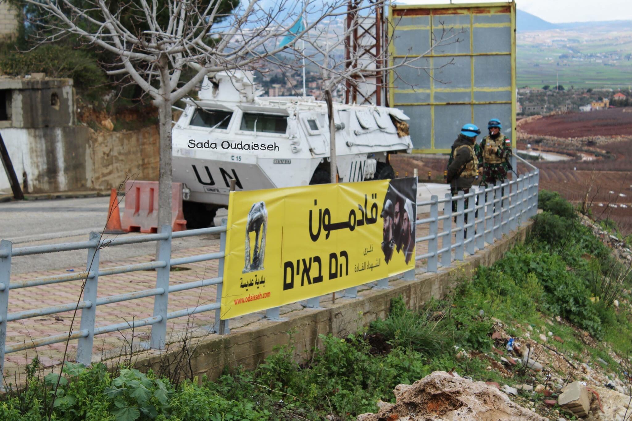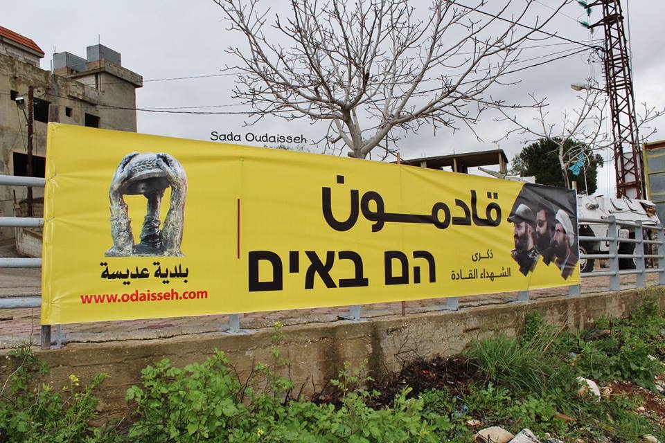 تم تعليق يافطة عند حدود بلدة عديسة مع الاراضي الفلسطينية مقابل العدو الإسرائيلي تحمل صور القادة الشهداء وكلمة ” قادمون ” باللغتين العربية والعبرية..