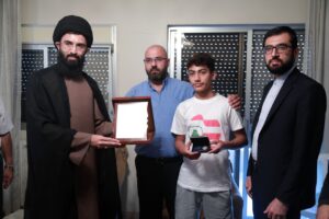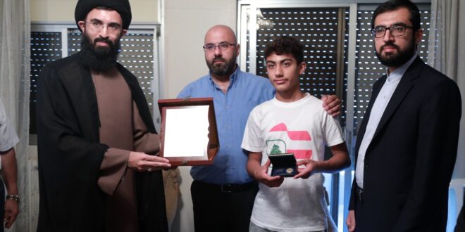 وختم السيد باقر كلمته بالقول: تكريمنا اليوم للبطل شربل أبو ضاهر وزيارتنا لبيته يأتي في هذا السياق، ونحييه على ما أنجز برفضه منافسة الصهاينة ونحيي عائلته الكريمة التي ربته على هذه الروحية”.