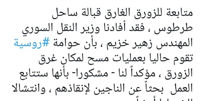 تابعة غرق الزورق قبالة ساحل طرطوس في سوريا لحظة بلحظة .