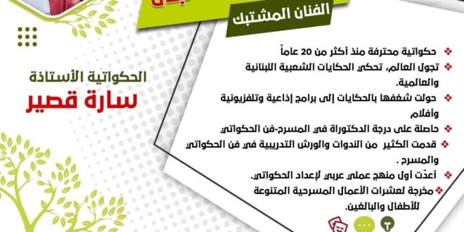 من ضيوف لمّة لبنان 2022 ⭐️ الحكواتية الأستاذة سارة قصير ⭐️ بادر في التسجيل الآن و احصل على بطاقتك و احفظها في جوالك لتتمكن من الحضور : https://lammeh.com/forms/event/3