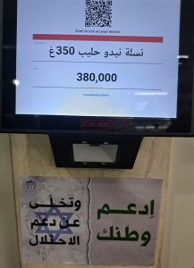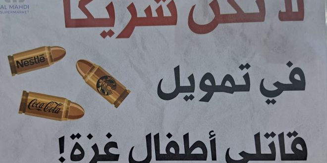 في مبادرة فردية قامت سوبر ماركت في مدينة صور جنوب لبنان بحملة مقاطعة البضائع التي يعود جزء من ربحها لدعم البضائع الأميركية الإسرائيلية والافت أن تم وضع إشارة منتج داعم على تلك البضائع مع بوسترات تنبيه . لا تكن شريكا” في تمويل قاتلي أطفال غزة