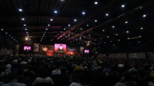 ثم أطل الأمين العام لحزب الله سماحة السيد حسن نصر الله عبر شاشة عملاقة مخاطبا الحاضرين.