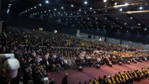 وختم بالقول: يا سيدنا المفدى بإسمي واسمي أخواتي، اسمح لنا أن نناديك يا والدنا، فأنت بعده السند والأمل، ولي لك رجاء وأمنية، أن تفتح طريقي لأكون جندياً على درب والدي الشهيد، لا لآخذ بثأره، لأن والدي علمني أنه ليس لدينا ثأر إلاّ ثأر الله، وإنما لأفديك بروحي وأكون مجاهداً على طريق الشهداء في كل ساحات العطاء التي تقودها، ولأكون تحت رايتك، راية الإمام القائد السيد علي الخامنئي “دام ظله”، ولك مني مع كل أبناء الشهداء وكل جمهور المقاومة على مدى الأزمان، نداء وصرخة من أعماق القلوب، بأن “لبيك يا نصر الله”.