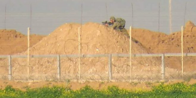 #صورة: أحد جنود الاحتلال على سواتر رملية خلال المواجهات التي اندلعت شرق مدينة خانيونس جنوب قطاع غزة.