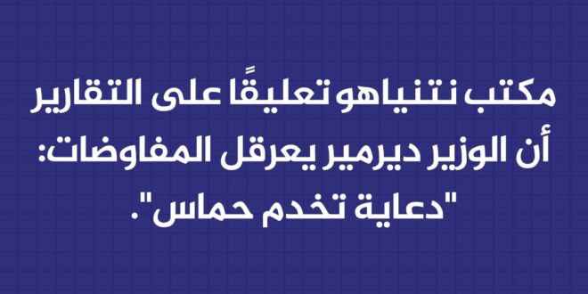 *يسرائيل هيوم:* مكتب نتنياهو تعليقًا على التقارير أن الوزير ديرمير يعرقل المفاوضات: "دعاية تخدم حماس".