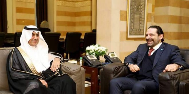 موفد خادم الحرمين الشريفين الملك سلمان بن عبد العزيز المستشار في الديوان الملكي نزار العلولا، يرافقه السفير السعودي لدى لبنان وليد اليعقوب والوزير المفوض في الديوان الملكي وليد البخاري.