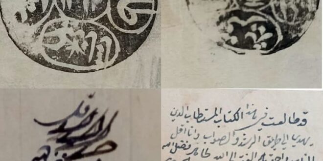 ختم وتوقيع السيد طاهر فضل الله (إمام قرية عيناثا طاهر ١٣١٢).ما يعادل 1894ميلادي