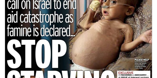 غلاف صحيفة “ديلي ميرور” البريطانية: “أوقفوا تجويع أطفال غزة”. خبر عاجل, عالمية شاركها Facebook Twitter